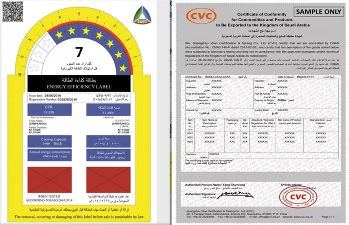 在2016年5月1号以后的灯泡且功率大于等于60W 需要提供SASO 2870能效测试报告和能效注册标签 才能申请SASO-COC证书