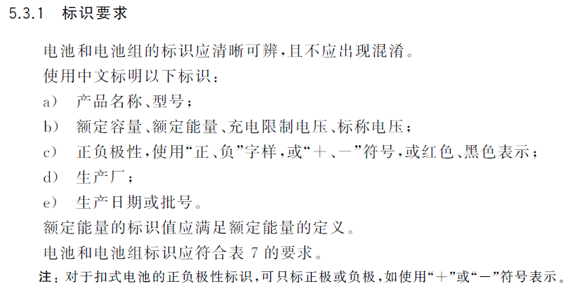 当表面积<10cm2时,生产厂、生产日期、产品名称可以使用代码标识,代码含义在规格书上进行说明,警示语在电池的最小包装上标识